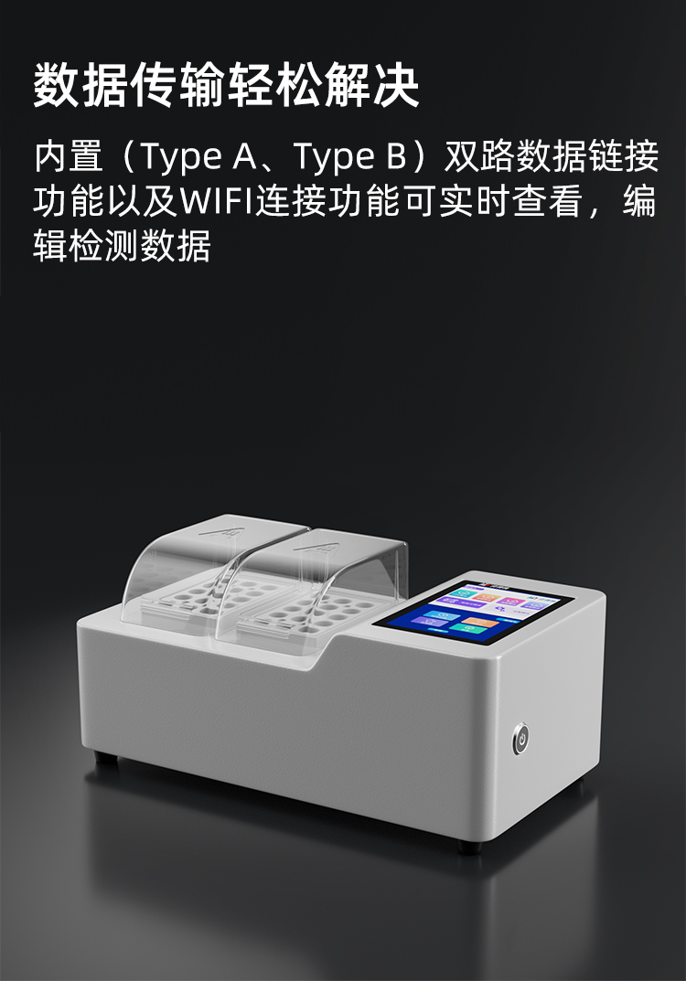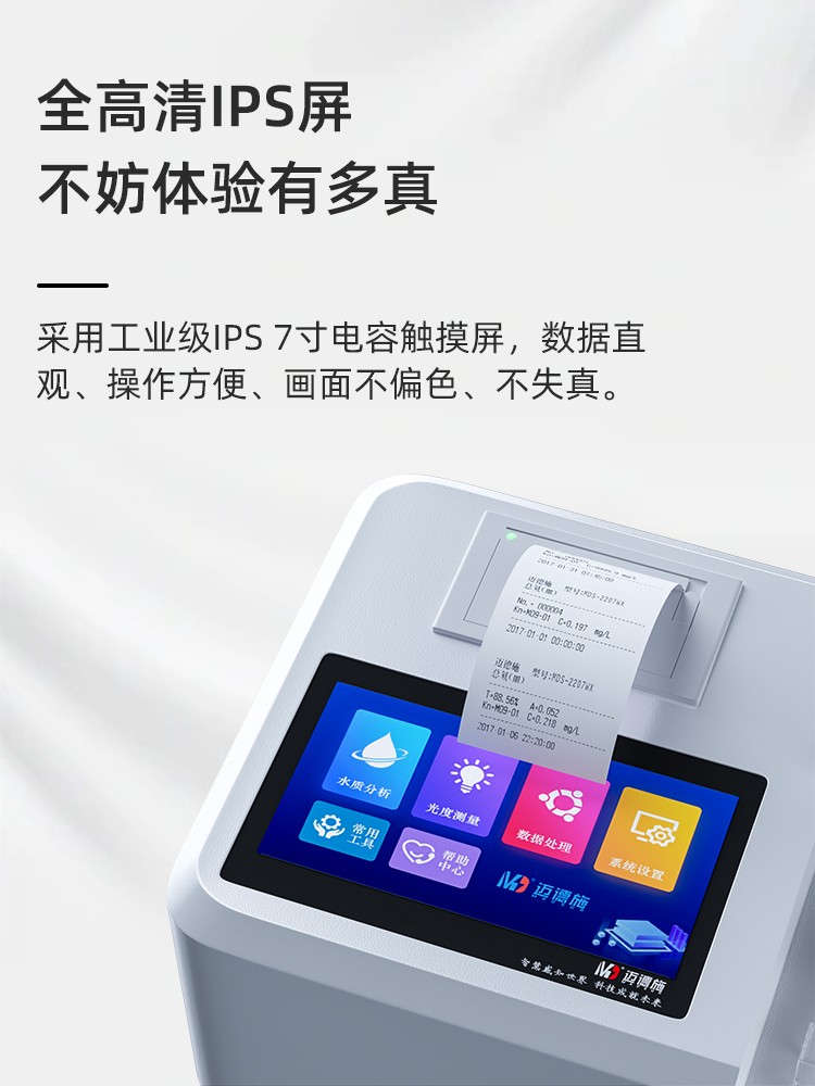 人工智能语音播报提示,可随意调节音量, 使用更方便更 配备112种预先编程的曲线,曲线数量990条,可浓度直读,测量结果更精密; 具有数据存储功能,可存储90万组数据,并能自由查看; 10寸彩色液晶显示触摸屏,全中文操作模式,更便于操作掌握; 仪器自备校准功能,可根据标准样品计算, 并存储曲线,无需手动制作曲线; 配备USB接口传输功能,自带打印机,可打印当前数据及存储的历史数据; 采用管比色、皿比色,双比色系统